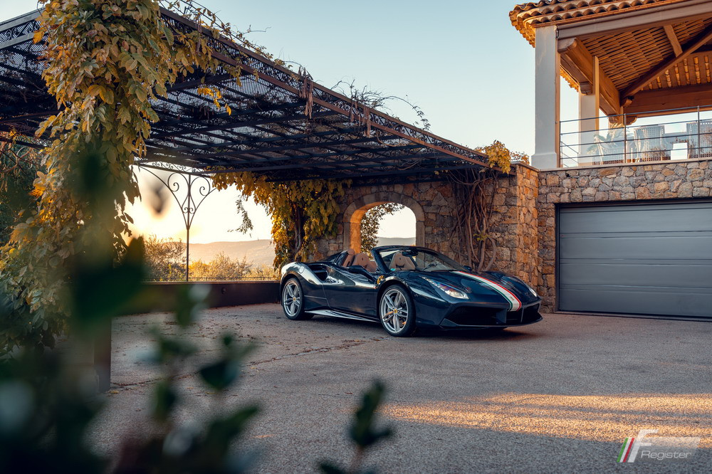 231606 488 Spider F1 'Tailor Made' 10/17 Blu Ahrabian 3CT FYM. 181095 PPG Verde Bandiera 6016 40051802 Bianco Avus 229025 Rosso Bandiera 3020 40051730 GTE-style livrea Tricolore/Tortora 130426 large Goldrake Racing seats Apollo Bright L$ Blu Scuro fabric central stripe Blu Medio 0827 stitching Tortora 130426 dash & steering wheel LHD EU ZFF80AMB000231606 painted Aluminum dials Shields Aluminum calipers cinture Comboblau Glossy Blu carbon sill kicks suspension lift HELE AFS1 system outer Argento Nürburgring Opaco & inner Grigio Corsa Opaco rims