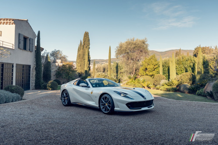 270566 812 GTS F1 7/21 Bianco Italia PPG/Blu Medio 112807 large Racing seats Alcantara Blu Medio 6633 central parts Bianco coloured inner details Bianco 2000 stitching Blu Medio 112807 upper dash Alcantara Blu Medio 6633 lower dash LHD EU ZFF97CMB000270566 ass. # 190907 Bianco dials painted Shields Blu calipers cinture Blu carbon sill kicks suspension lift AFS2 system